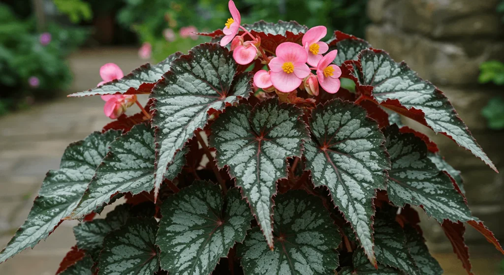 Use bright, filtered light and allow the top inch of soil to dry before watering again. Begonias enjoy warmth and steady moisture. They shine on bookshelves, windowsills, or anywhere you want a mix of flowers and statement foliage.