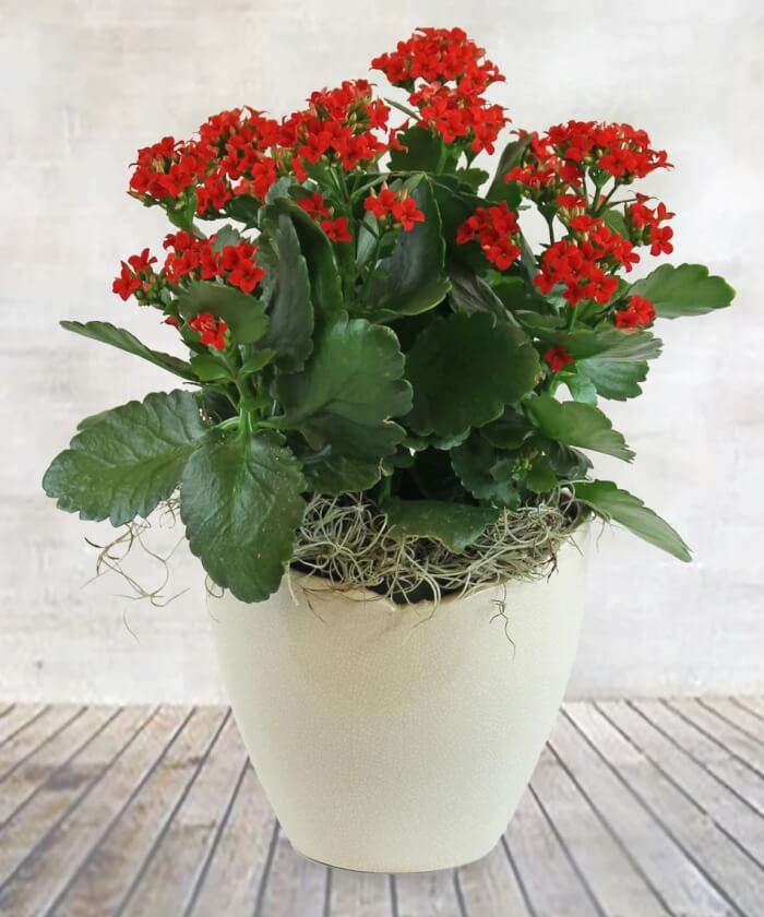 Kalanchoe brings bright, candy-colored clusters that last for weeks. It’s cheerful and compact—perfect for desks, shelves, or anywhere that needs a quick burst of color.