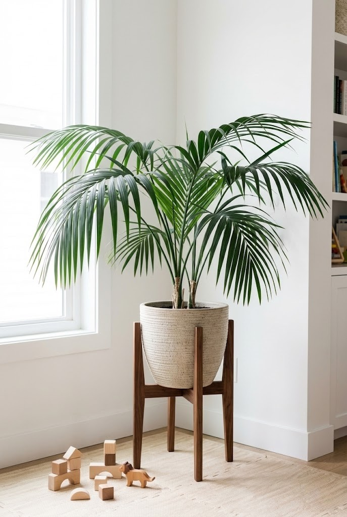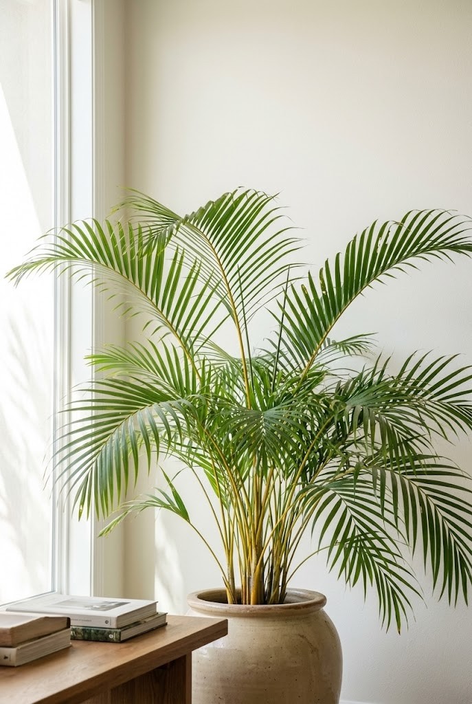 Areca palm is the soft, feathery one that makes a room feel finished. It looks great in a bright corner near the sofa zone, especially when the fronds can spread without being in the main walkway.