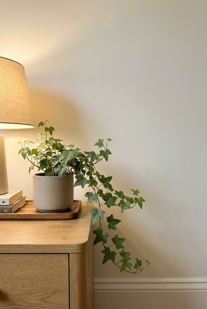 English ivy looks classic and slightly cottagey — tidy leaves, trailing stems, and an instantly styled silhouette even in a simple pot.