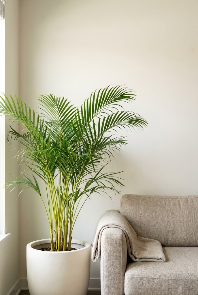 An areca palm makes a room feel brighter even before you open the curtains — airy fronds that catch light and add that breezy, vacation-at-home softness.