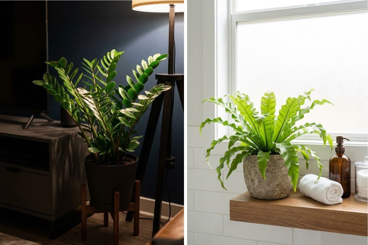 Some corners never catch daylight at all. They sit beyond the reach of windows and rely on a single lamp in the evening. In these spots, the goal is less about growth and more about holding presence.