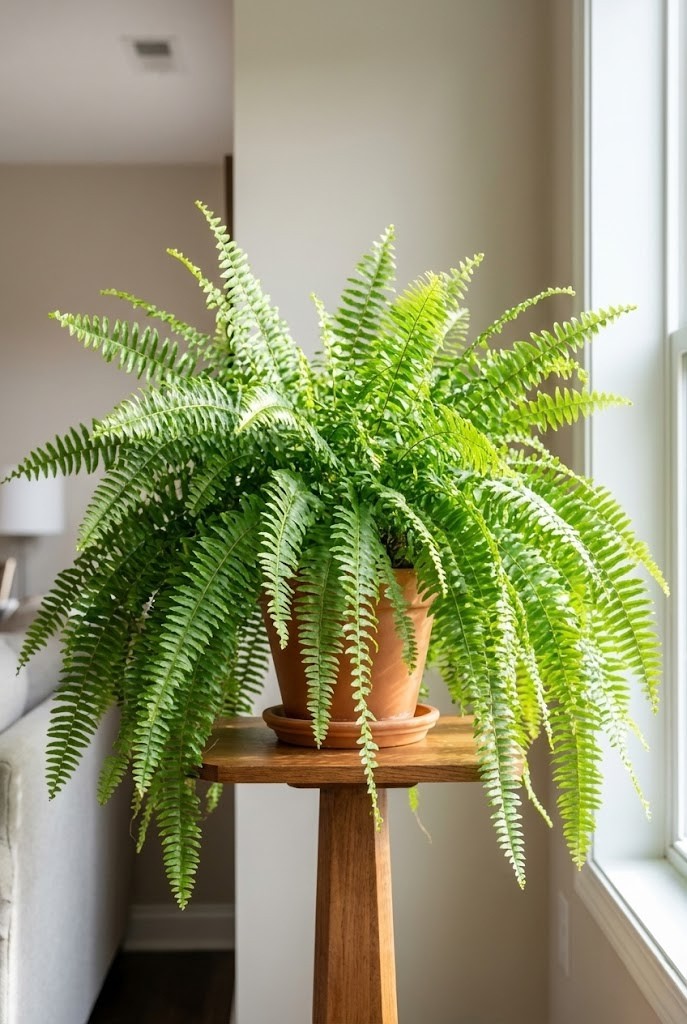 Low-risk note. Boston fern is widely listed as non-toxic for pets. It likes consistent moisture, so don’t let it dry out completely. If your home runs dry, move it away from heat vents.