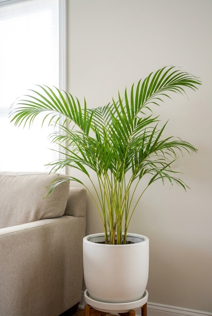 Low-risk note. Areca palm is widely listed as non-toxic for common household pets. Give it bright, filtered window light and water when the top inch feels dry so it stays full.