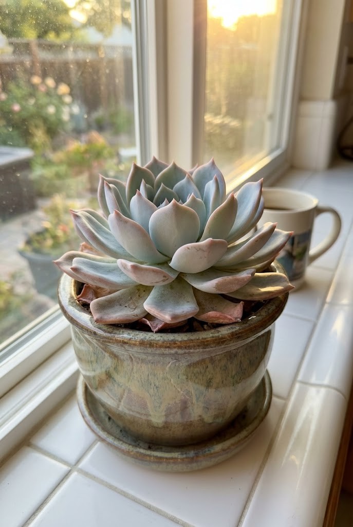 Echeveria looks like a living flower, with a rosette shape that makes a sunny windowsill feel styled. It’s ideal for bright kitchens and dining areas.