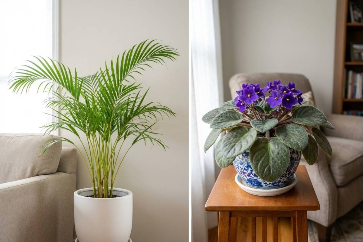 If pets roam the floor, start with sturdier, heavier-pot plants like cast iron plant, money tree, or palms positioned behind a side table barrier. Pot weight matters more than stand height in busy rooms.