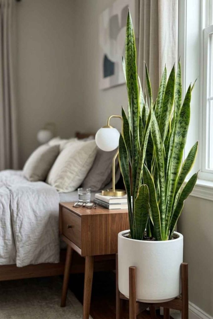 If you frequently wake up feeling congested in a poorly ventilated space, the Snake Plant is a rare night-watch that releases oxygen while you sleep, which can help support a fresher environment.