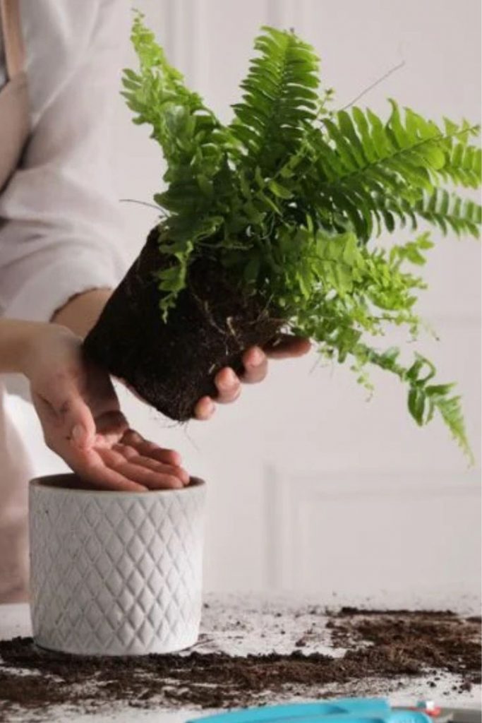 For tall ferns, choose a container with a narrow neck to hold the plant upright.