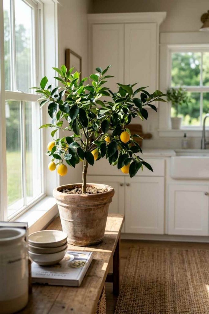 A Citrus × meyeri tree is a commitment, but the payoff is a natural citrus scent that no candle can replicate. To actually thrive indoors, it needs a minimum of 8 hours of direct sun—this isn’t a plant for a “bright-ish” room; it needs the hottest spot you have.