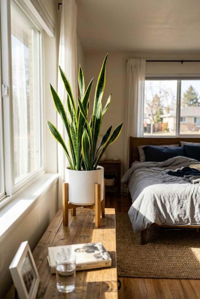 Most people tuck Snake Plants into dark corners, but they actually reach their peak structural strength in direct sun. In a bright window, the vertical “swords” grow faster and the yellow variegation stays sharp and high-contrast rather than fading to a muddy green.