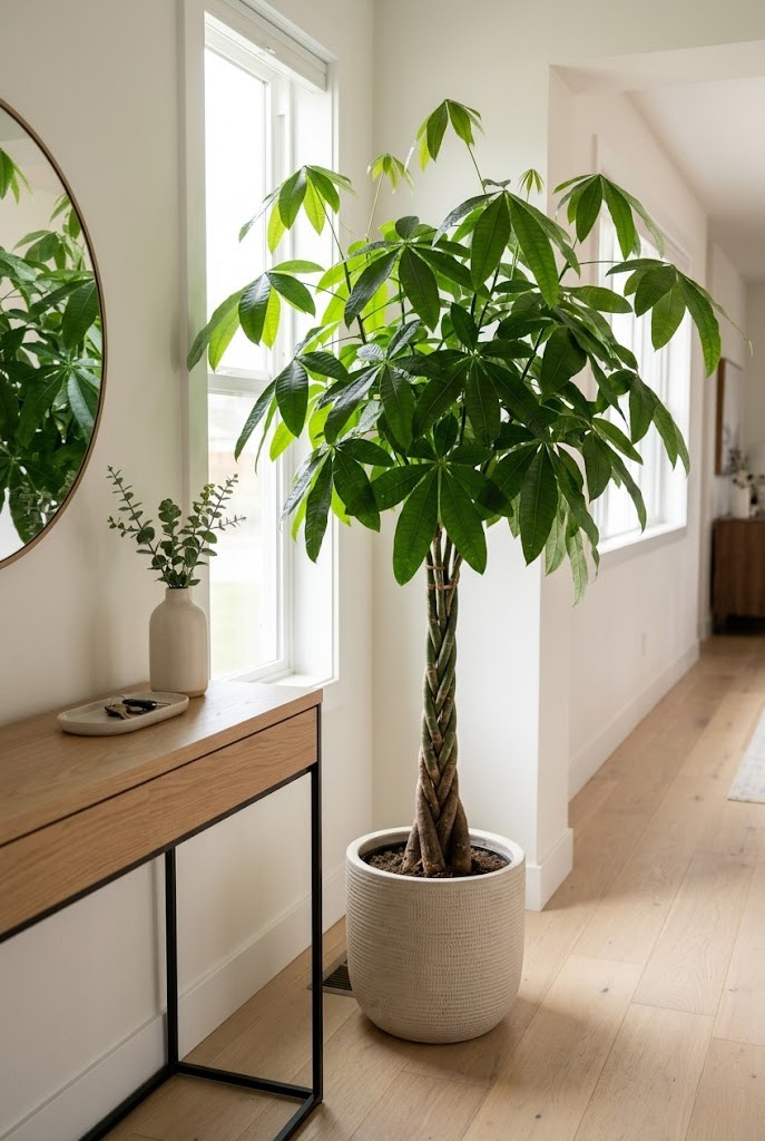 If you want one plant that reads “good things live here,” this is it—glossy leaves, a tidy canopy, and that braided trunk that feels purposeful. Money tree is widely seen as a symbol of welcome, prosperity, and steady growth.